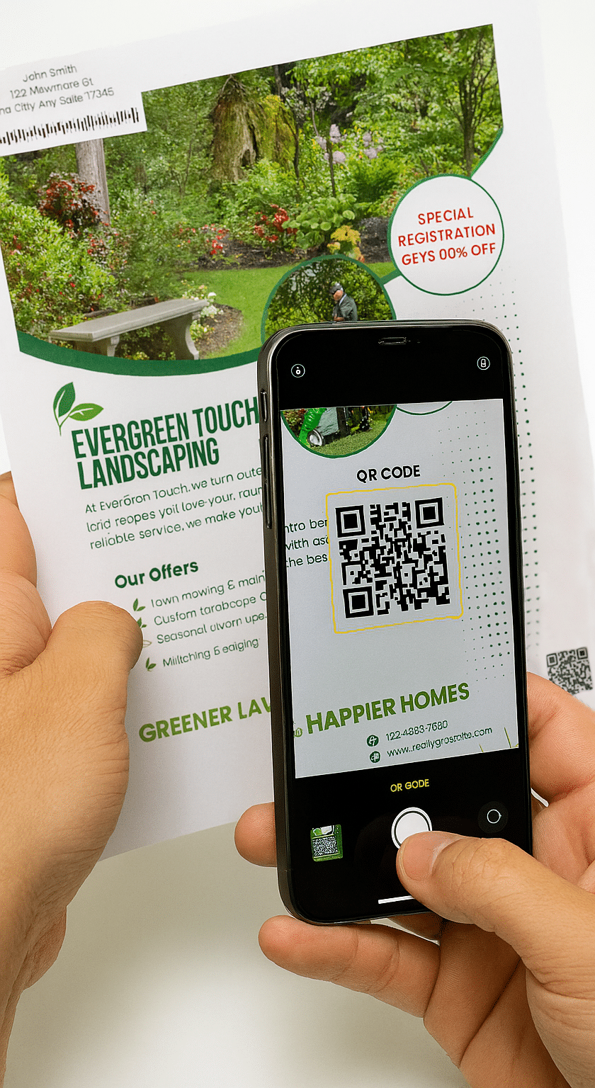 A printed mailer with a QR code creates instant access to more information. Whether it’s scanning to view a video, redeem a discount, or RSVP to an event, the experience becomes seamless. The easier the journey, the more likely customers are to engage and convert.